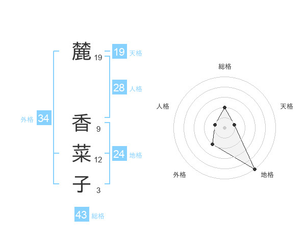 麓 香菜子さんの天格は19画の1点!