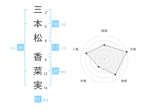 三本松 香菜実さんを姓名の画数から五運を鑑定