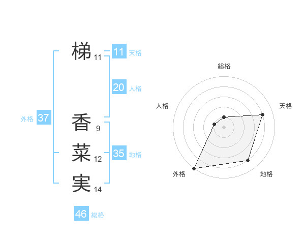 梯 香菜実さんの地格は35画の4点!