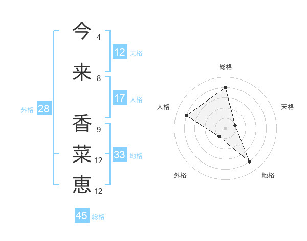 今来 香菜恵さんの総格は45画の4点!