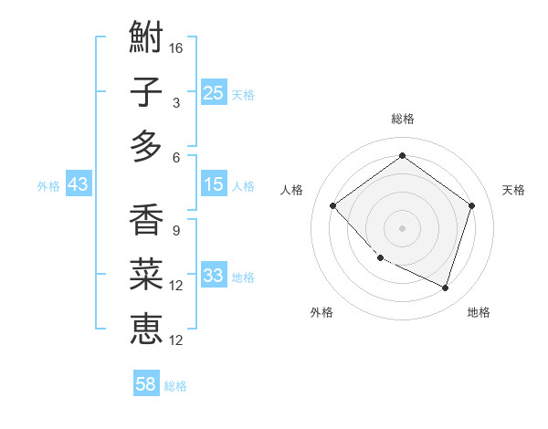 鮒子多 香菜恵さんを姓名の画数から五運を鑑定