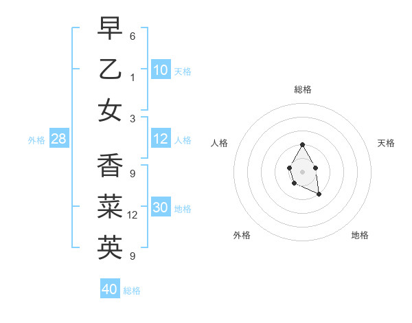 早乙女 香菜英さんの総格は40画の2点!
