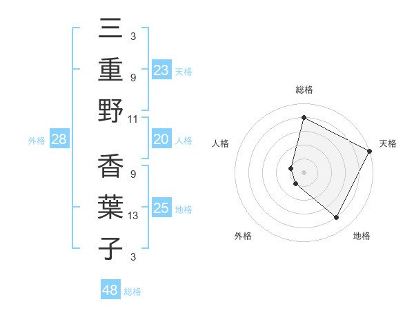 三重野 香葉子さんの総格は48画の4点