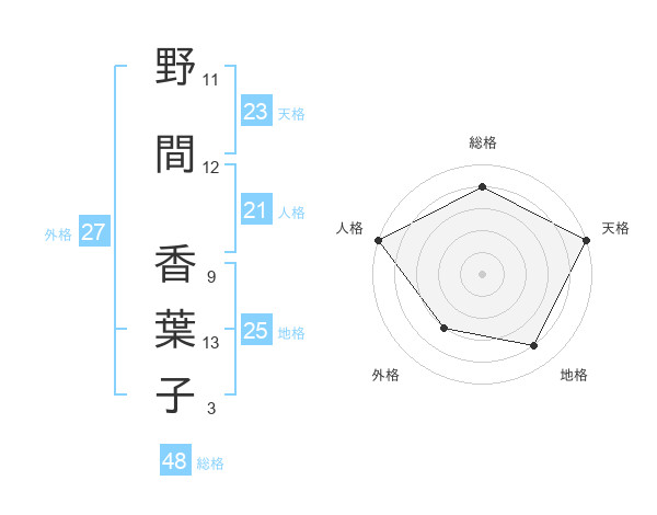野間 香葉子さんの外格は27画の3点!