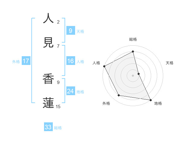 人見 香蓮さんの総格は33画の4点!