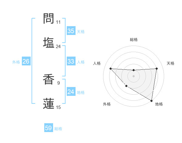 問塩 香蓮さんの天格は35画の4点!