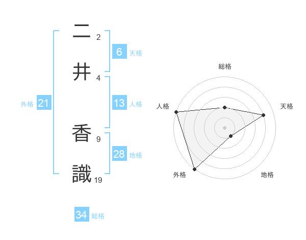二井 香識さんの総格は34画の2点!