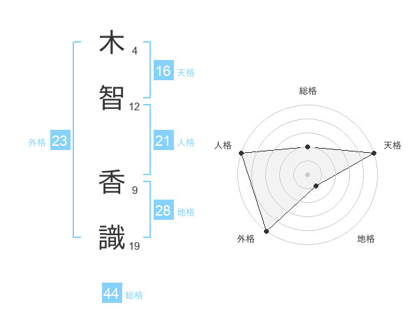 木智 香識さんの天格は16画の5点!
