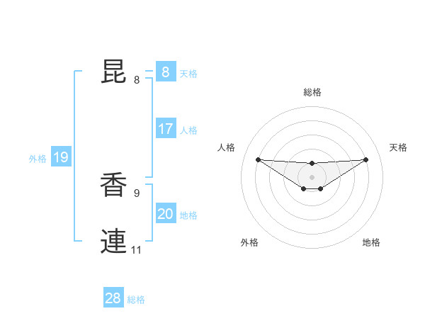 昆 香連さんの天格は8画の4点!