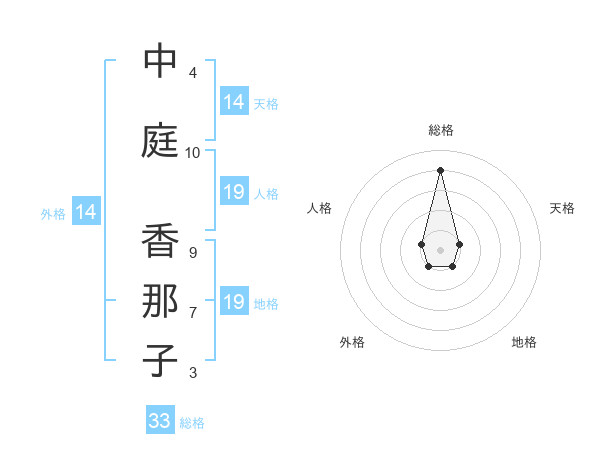 中庭 香那子さんの外格は14画の1点