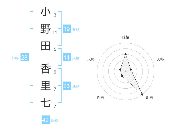 小野田 香里七さんを姓名の画数から五運を鑑定