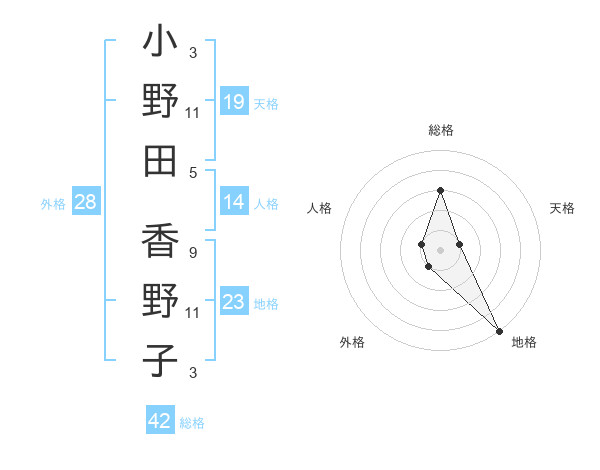 小野田 香野子さんを姓名の画数から五運を鑑定
