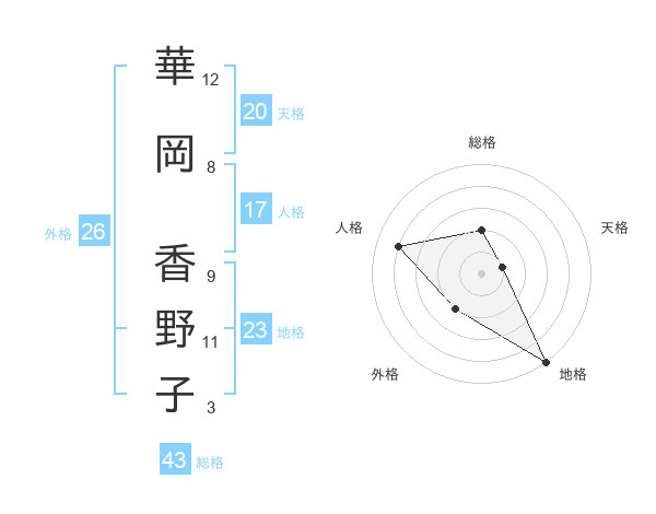 華岡 香野子さんを姓名の画数から五運を鑑定
