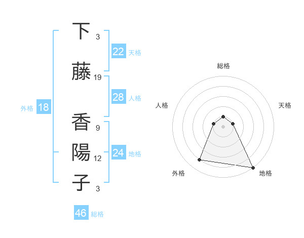 下藤 香陽子さんの総格は46画の1点!