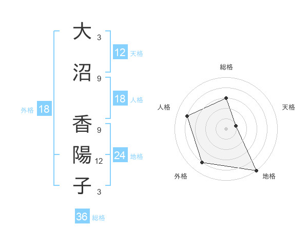 大沼 香陽子さんを姓名の画数から五運を鑑定
