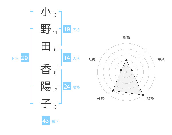 小野田 香陽子さんを姓名の画数から五運を鑑定