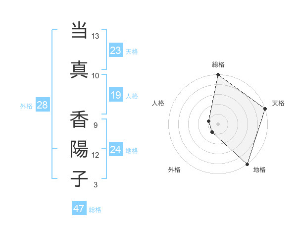 当真 香陽子さんの総格は47画の5点!