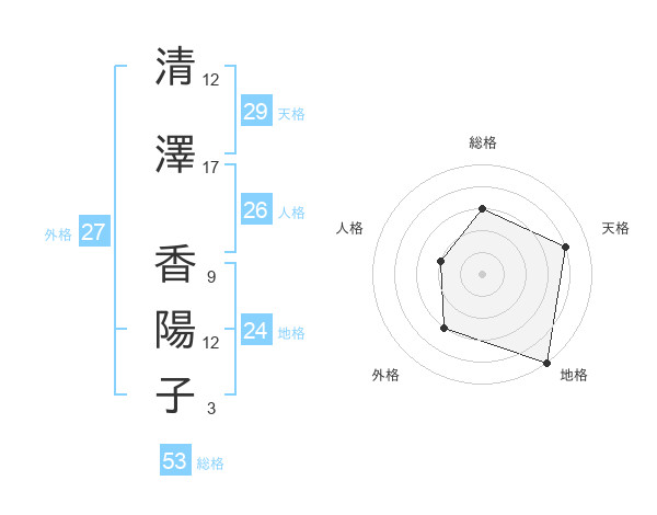 清澤 香陽子さんの総格は53画の3点!