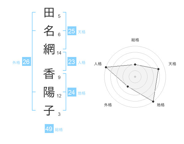 田名網 香陽子さんを姓名の画数から五運を鑑定