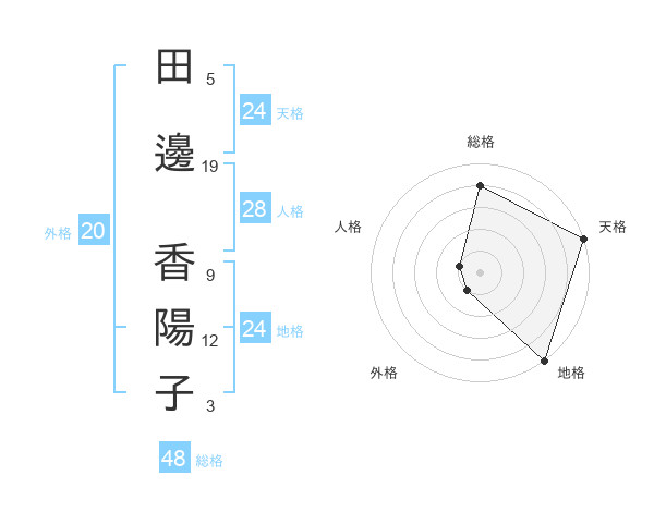 田邊 香陽子さんを姓名の画数から五運を鑑定