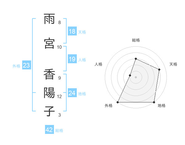 雨宮 香陽子さんを姓名の画数から五運を鑑定