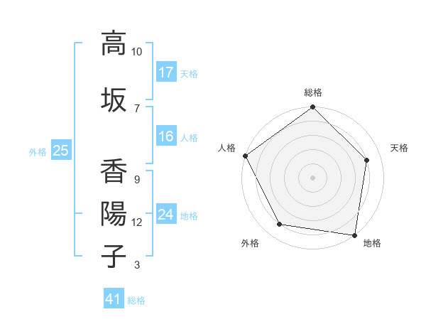 高坂 香陽子さんの総格は41画の5点!