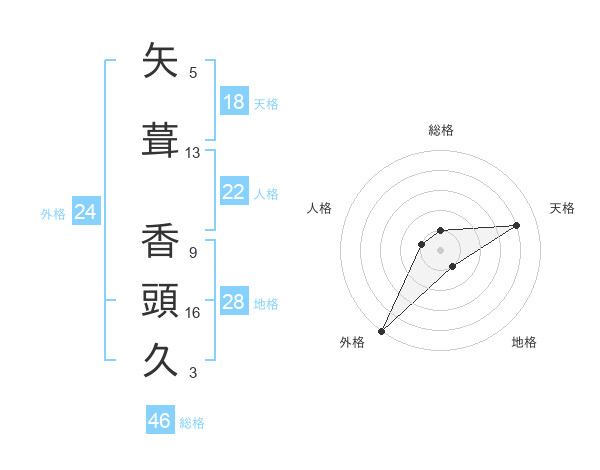 矢葺 香頭久さんの総格は46画の1点!