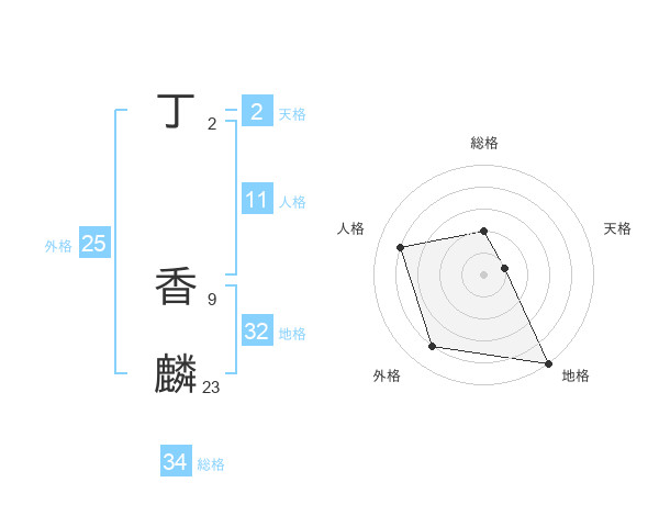 丁 香麟さんの総格は34画の2点!