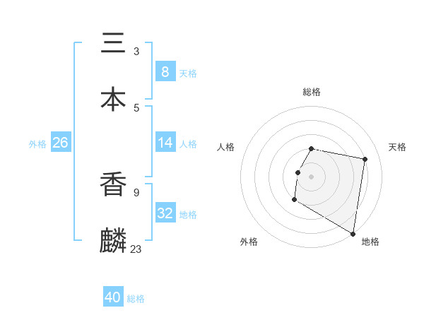 三本 香麟さんの天格は8画の4点!