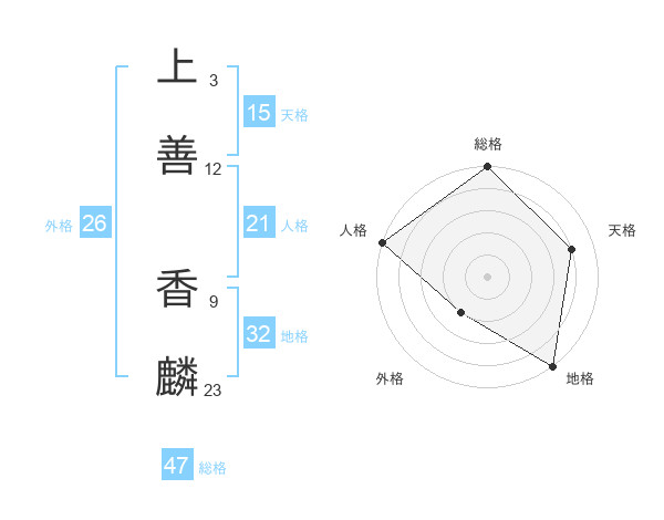 上善 香麟さんの総格は47画の5点!