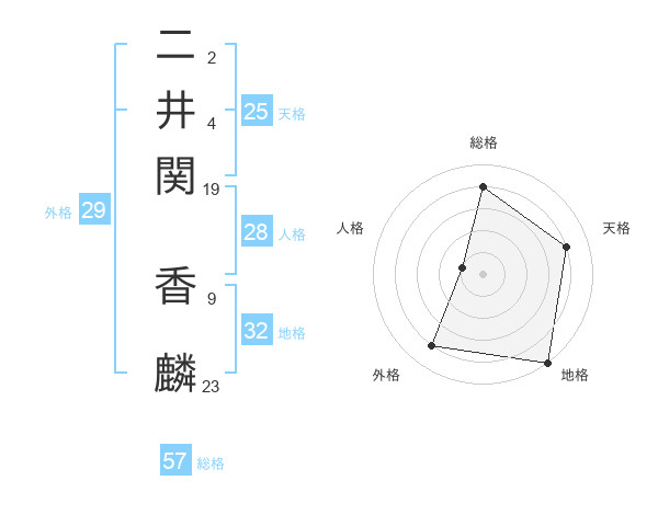 二井関 香麟さんの総格は57画の4点!