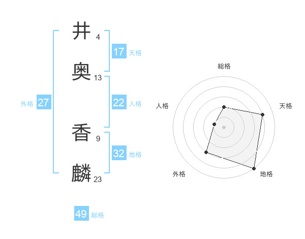 井奥 香麟さんの天格は17画の4点!