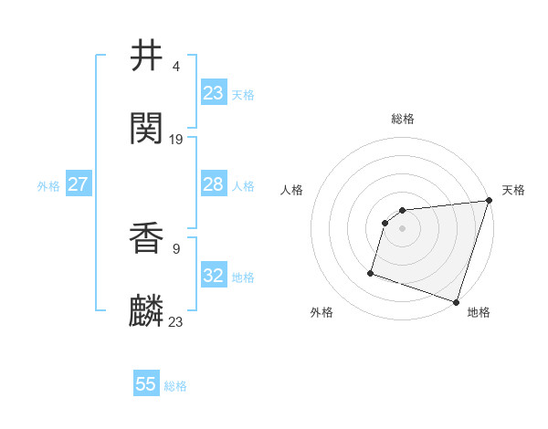井関 香麟さんの総格は55画の1点!