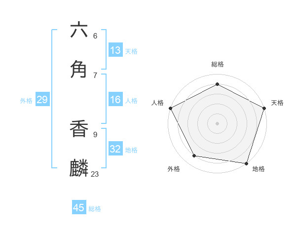 六角 香麟さんの天格は13画の5点!