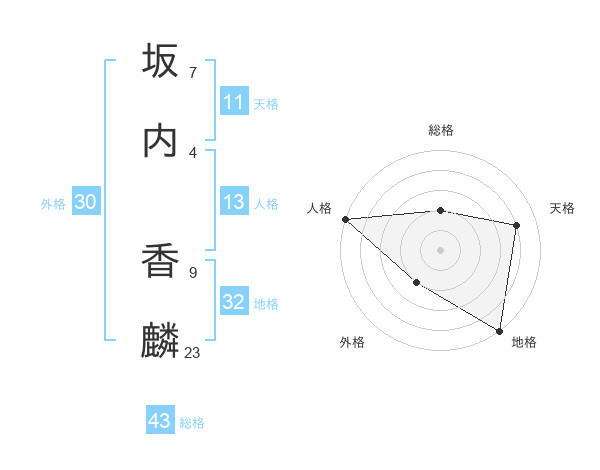 坂内 香麟さんの総格は43画の2点!
