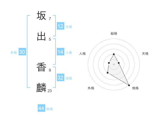 坂出 香麟さんの総格は44画の2点!