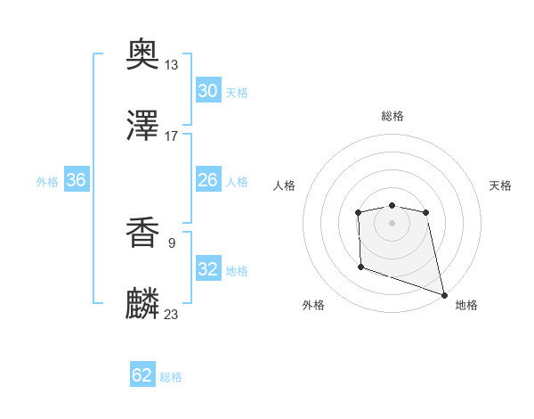 奥澤 香麟さんの天格は30画の2点!