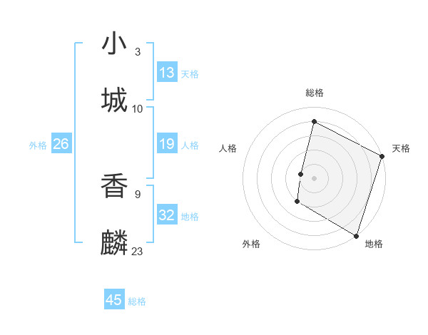 小城 香麟さんの総格は45画の4点!