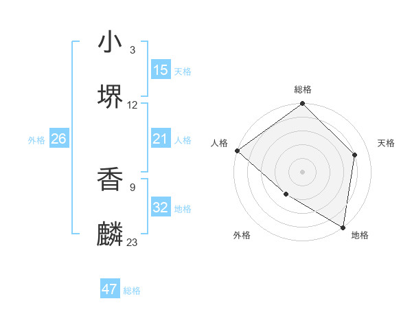 小堺 香麟さんの総格は47画の5点!