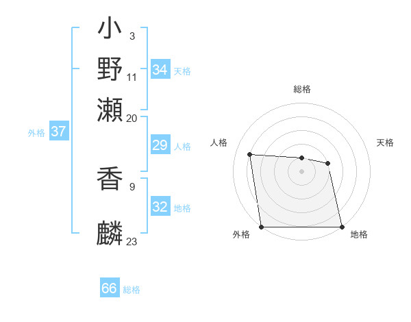 小野瀬 香麟さんを姓名の画数から五運を鑑定