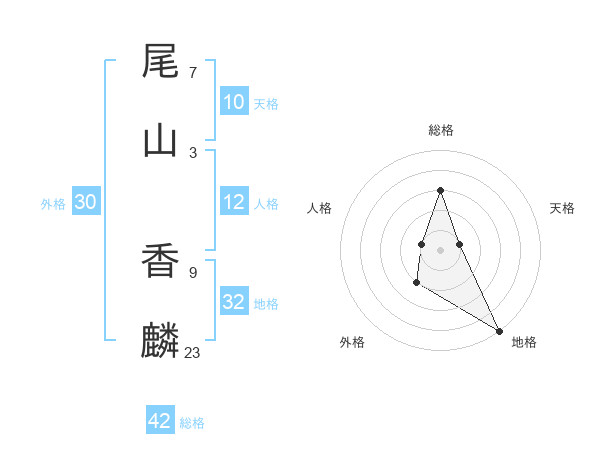 尾山 香麟さんの総格は42画の3点!