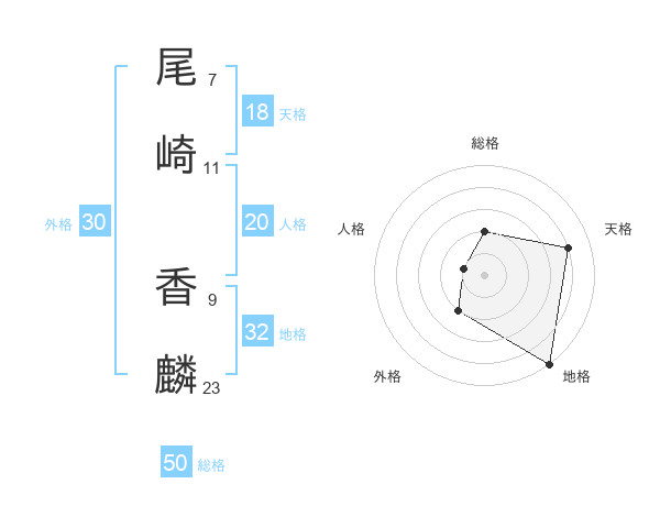 尾崎 香麟さんの総格は50画の2点!