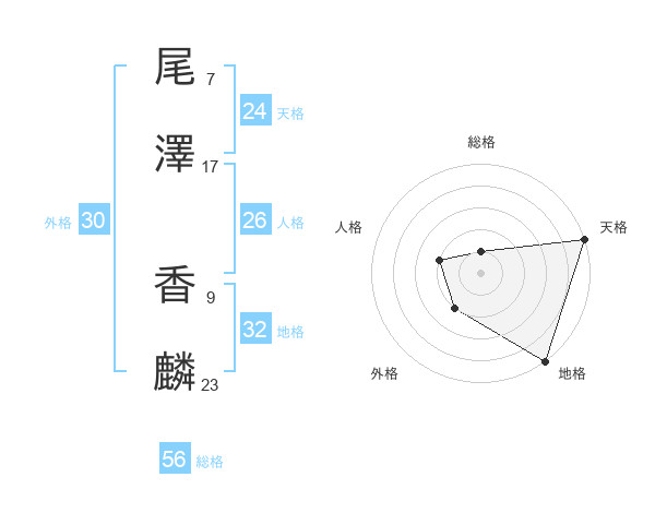 尾澤 香麟さんの天格は24画の5点!