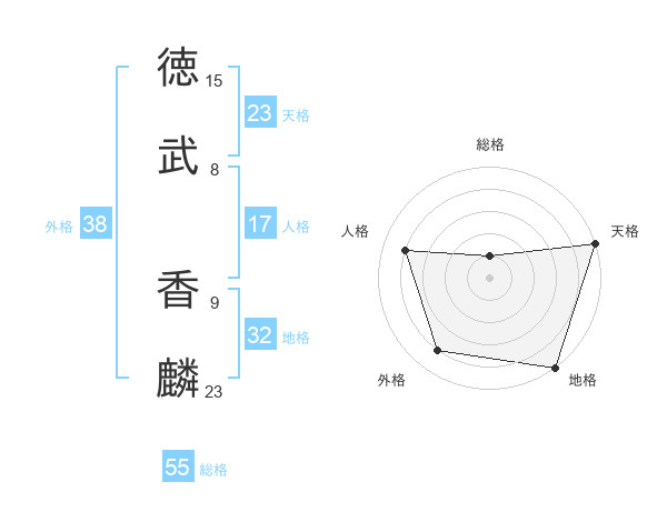徳武 香麟さんの外格は38画の4点!