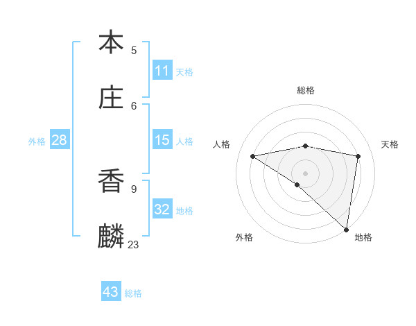 本庄 香麟さんの地格は32画の5点!