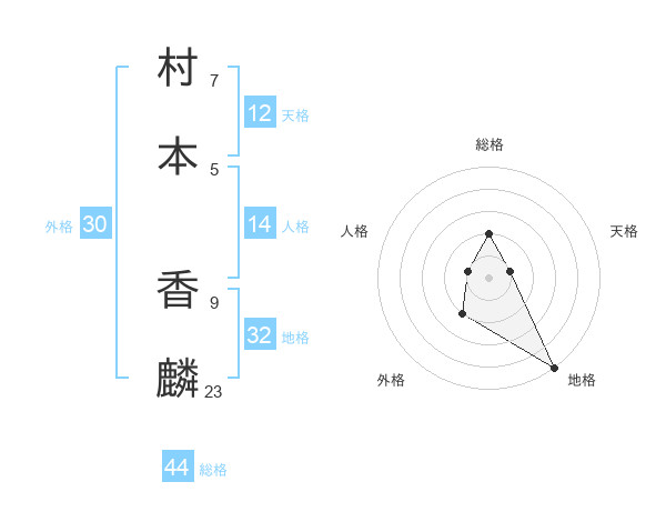 村本 香麟さんの総格は44画の2点!