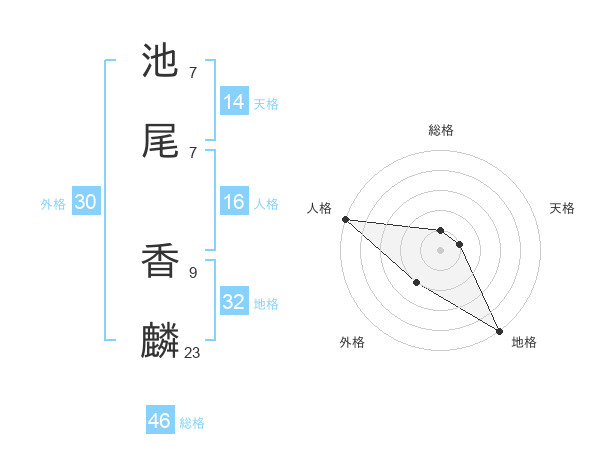 池尾 香麟さんの総格は46画の1点!