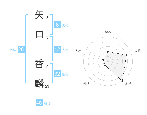 矢口 香麟さんの総格は40画の2点!