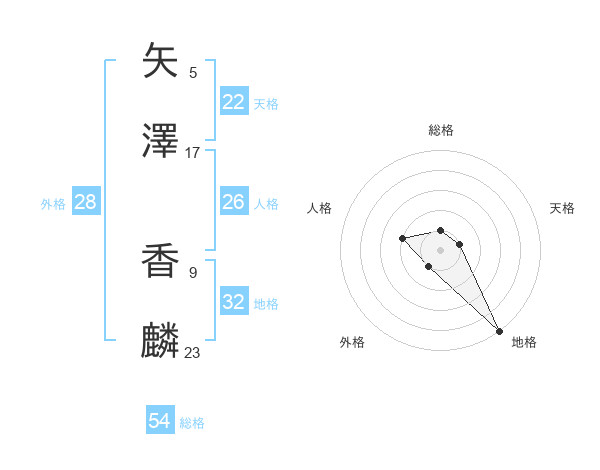矢澤 香麟さんを姓名の画数から五運を鑑定