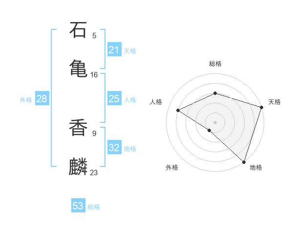 石亀 香麟さんを姓名の画数から五運を鑑定